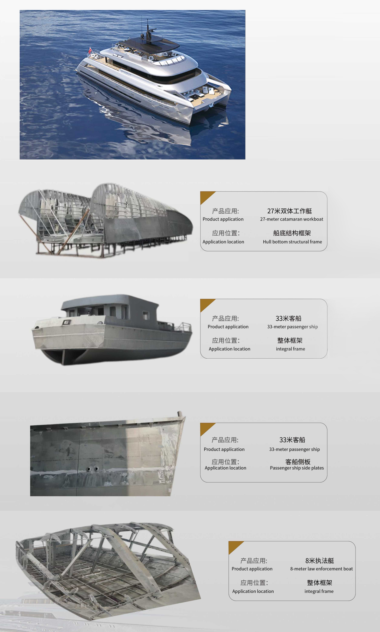(1)5083、5086、5383-H321/H116/H112/H111/O型,典型规格为(2-80)x2000x(6000/8000),通过国内外八家船级社认证;